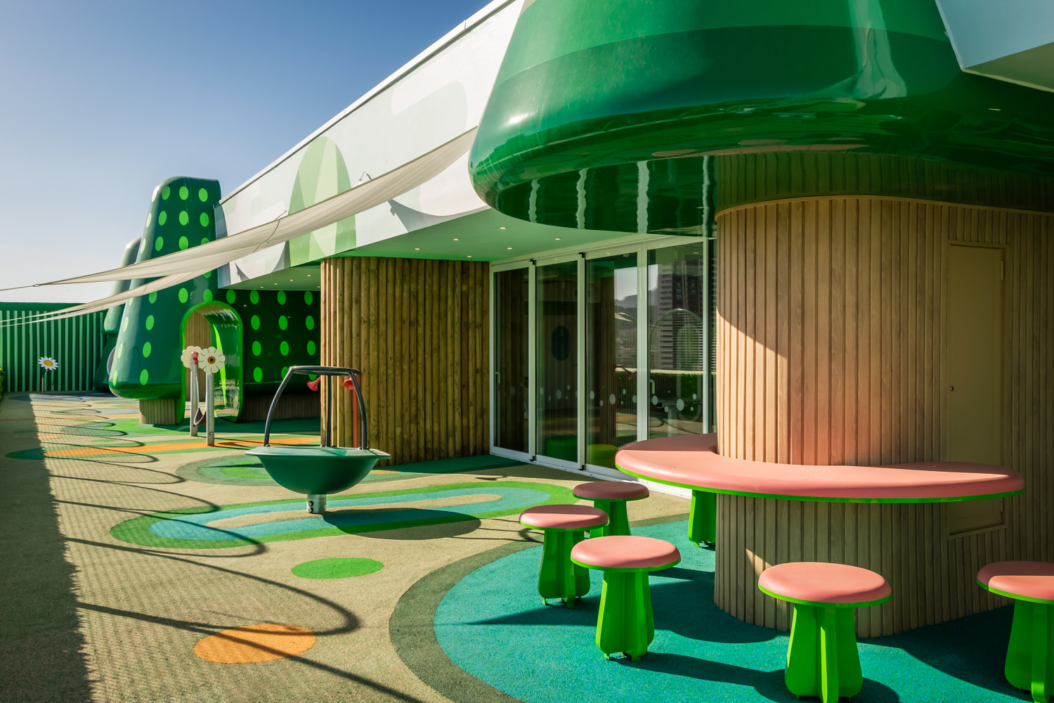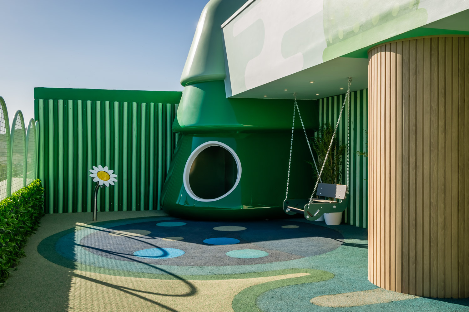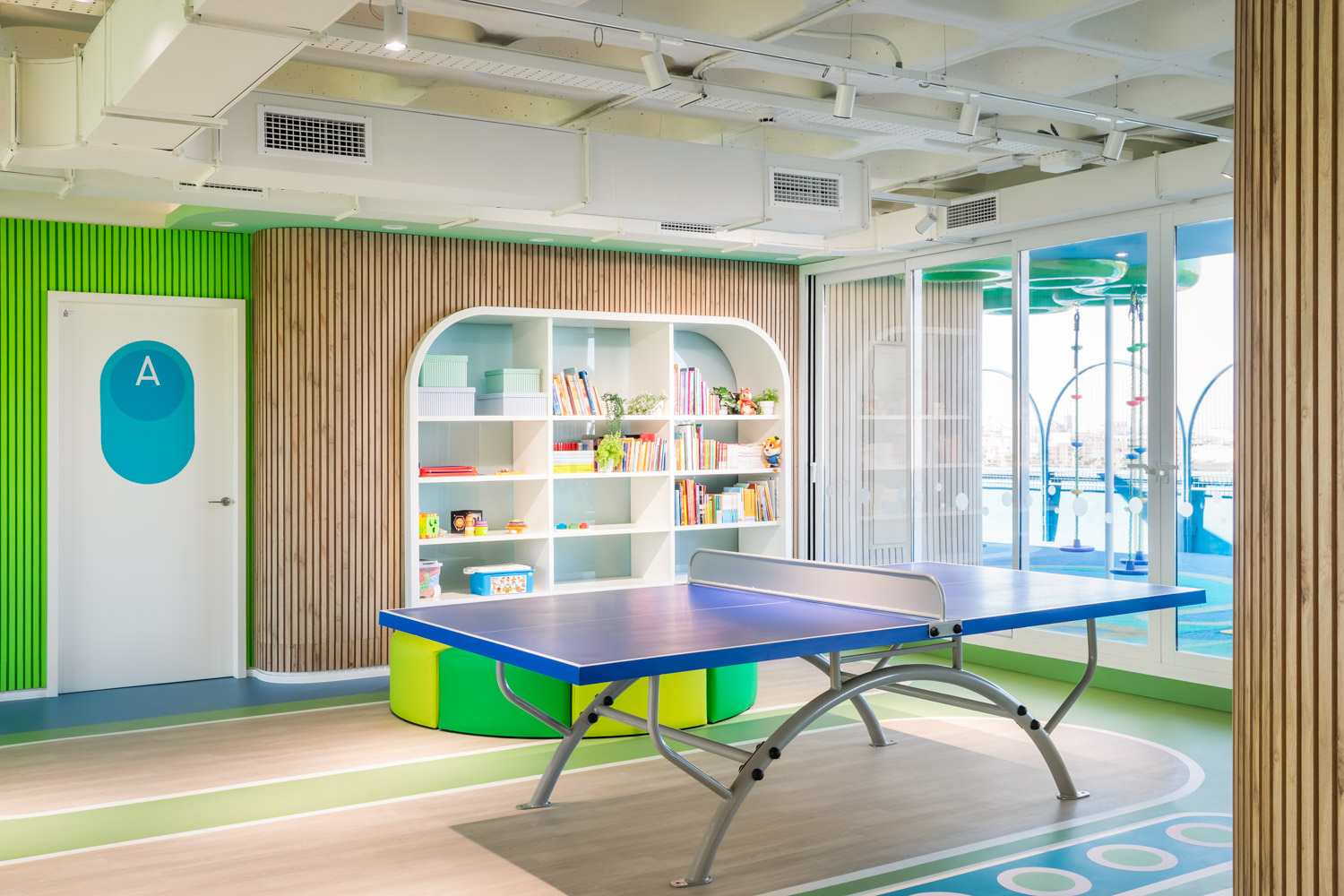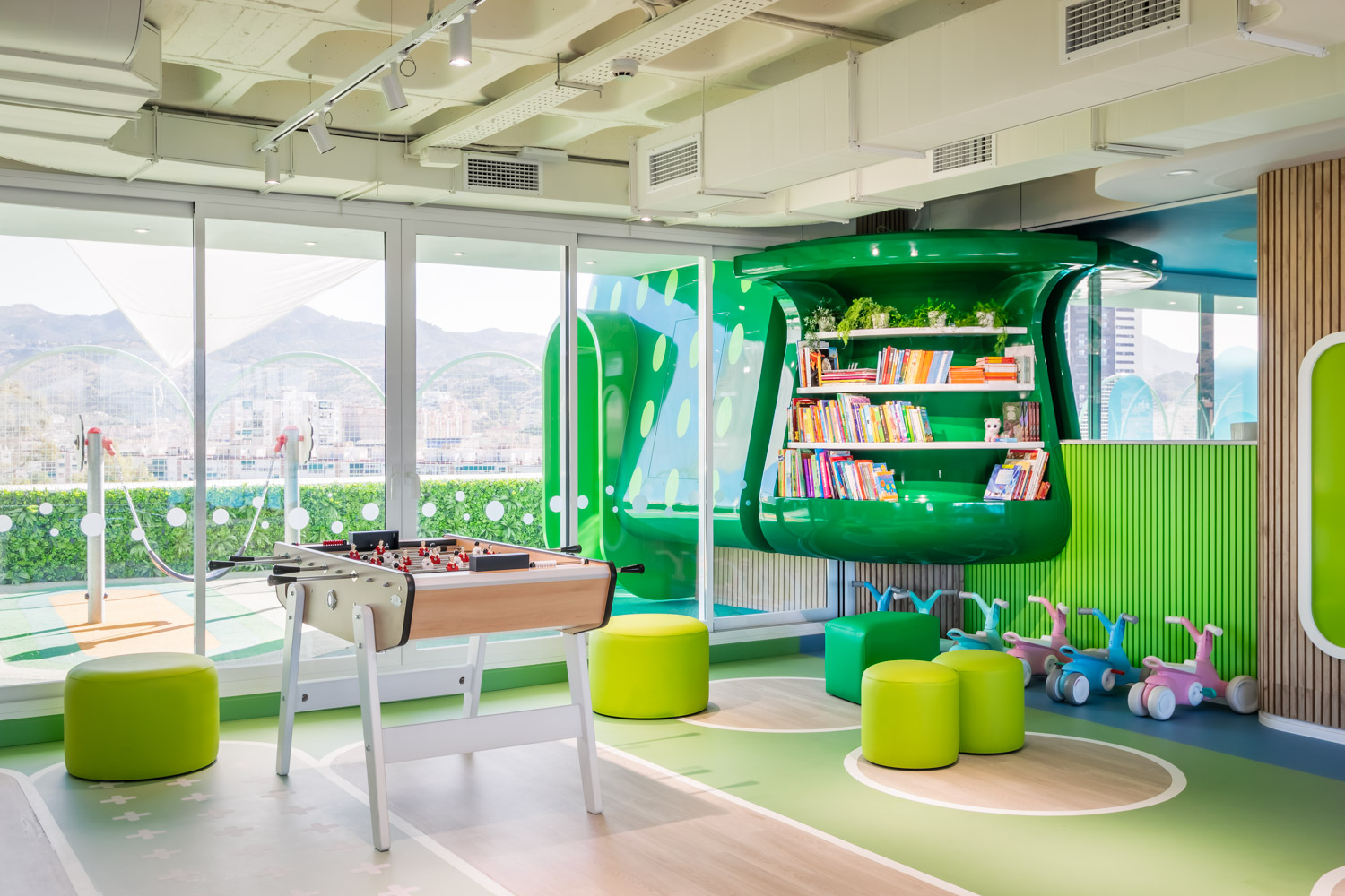 The project required the creation of interior areas with children's classrooms and play zones, in addition to two distinctive terraces: "The Enchanted Valley" on the north terrace and "Ocean Waves" on the south terrace.