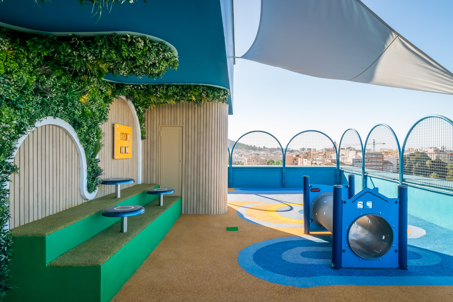 When Fundación Juegaterapia approached us to transform the rooftop of the Maternal and Child Hospital of Málaga, we faced a unique challenge that went far beyond conventional construction. The mission was to create a sanctuary of hope and healing spanning 1,200 sqm, a space where children battling cancer could find moments of joy, learning, and normalcy amid their medical journey.