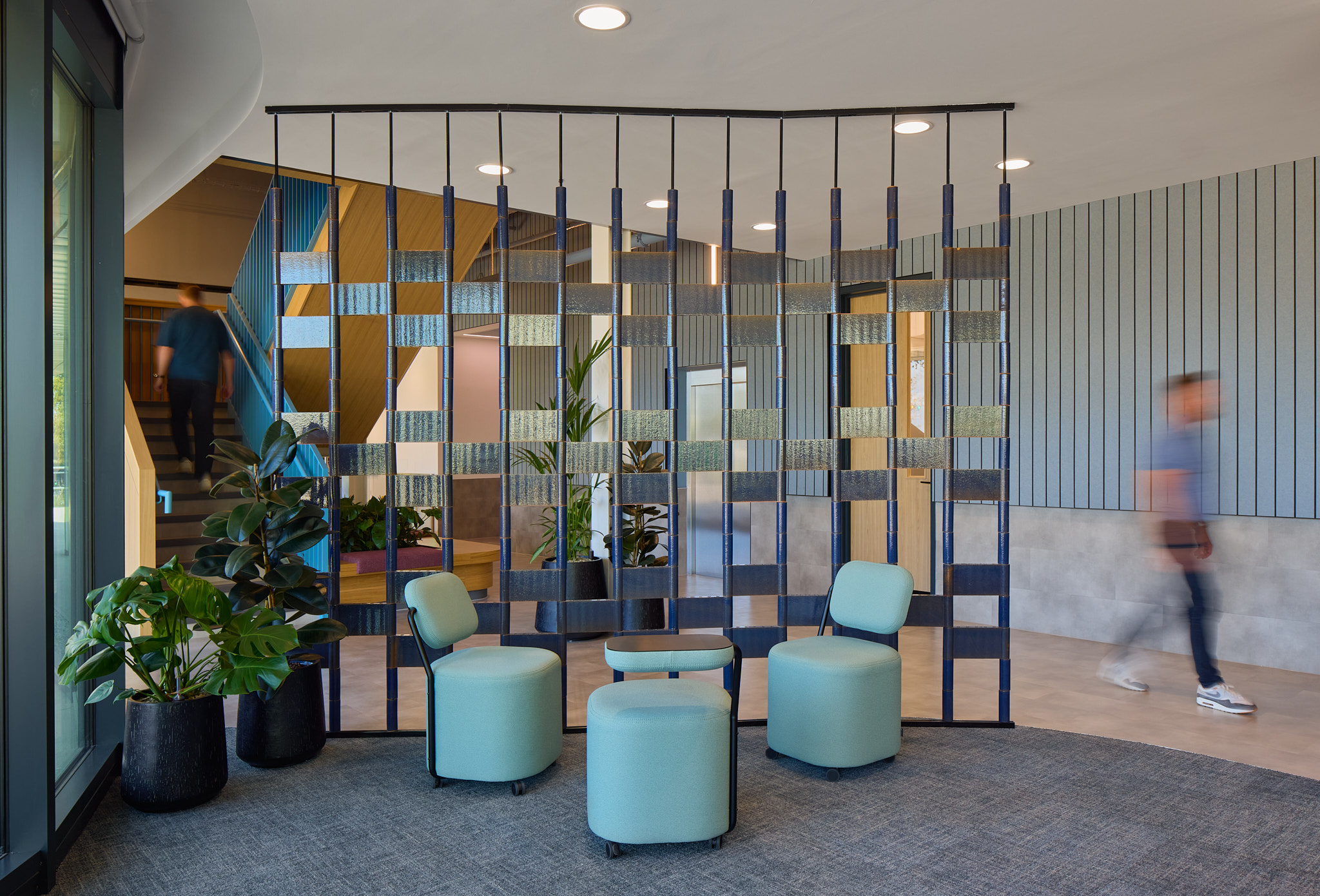 - Integrating office space with modular labs and 2.5m ceiling void, managing services routing and acoustic separation.