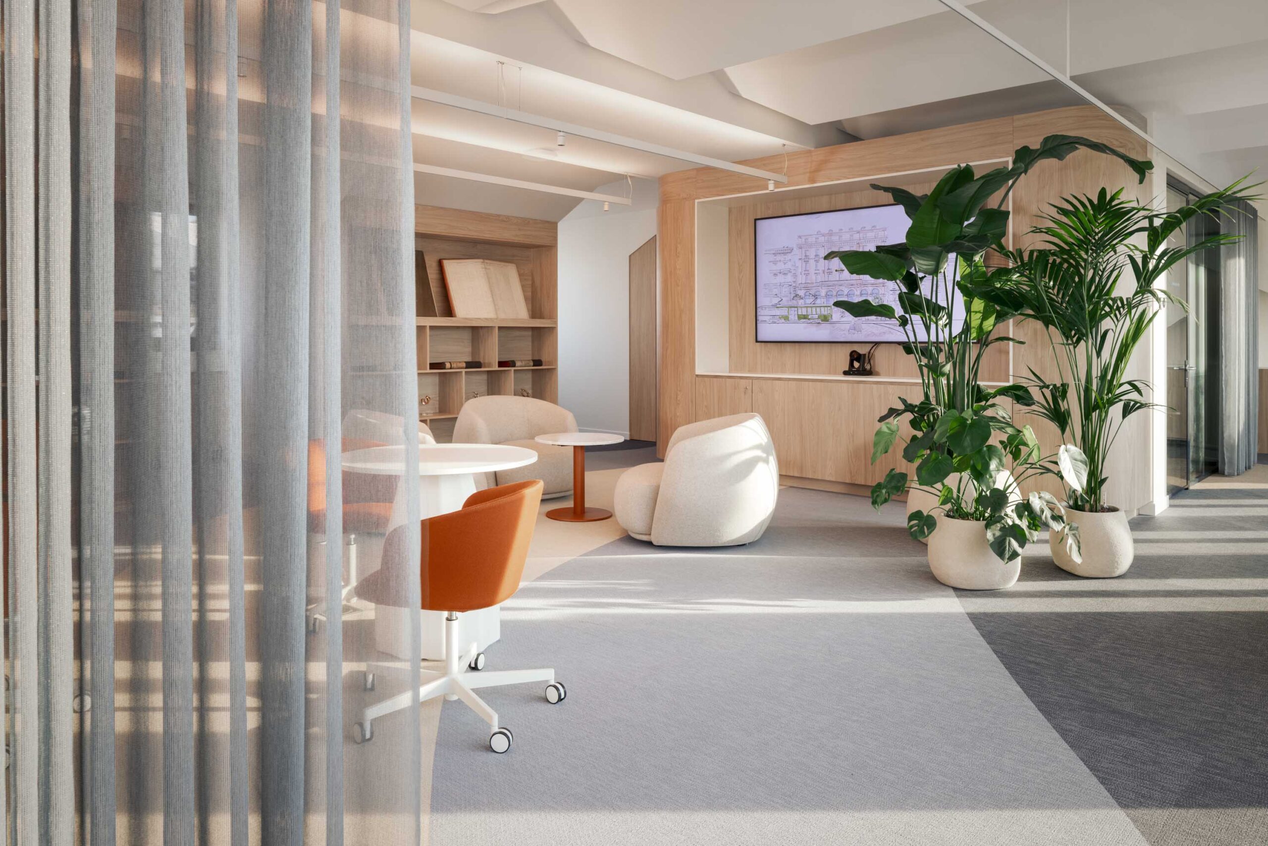 Tétris ha curato ogni aspetto del progetto con un approccio integrato, dal concept iniziale alla fornitura dell’arredamento, fino all’allestimento finale. Il progetto ha previsto opere strutturali e impiantistiche di particolare complessità per l’adeguamento dei piani al rustico e interventi di fit-out per la consegna in Cat A, con soluzioni mirate ad armonizzare struttura preesistente, creatività architettonica e operatività, preservando l’integrità del complesso immobiliare e dotandolo di tutte le infrastrutture necessarie per una sede moderna.