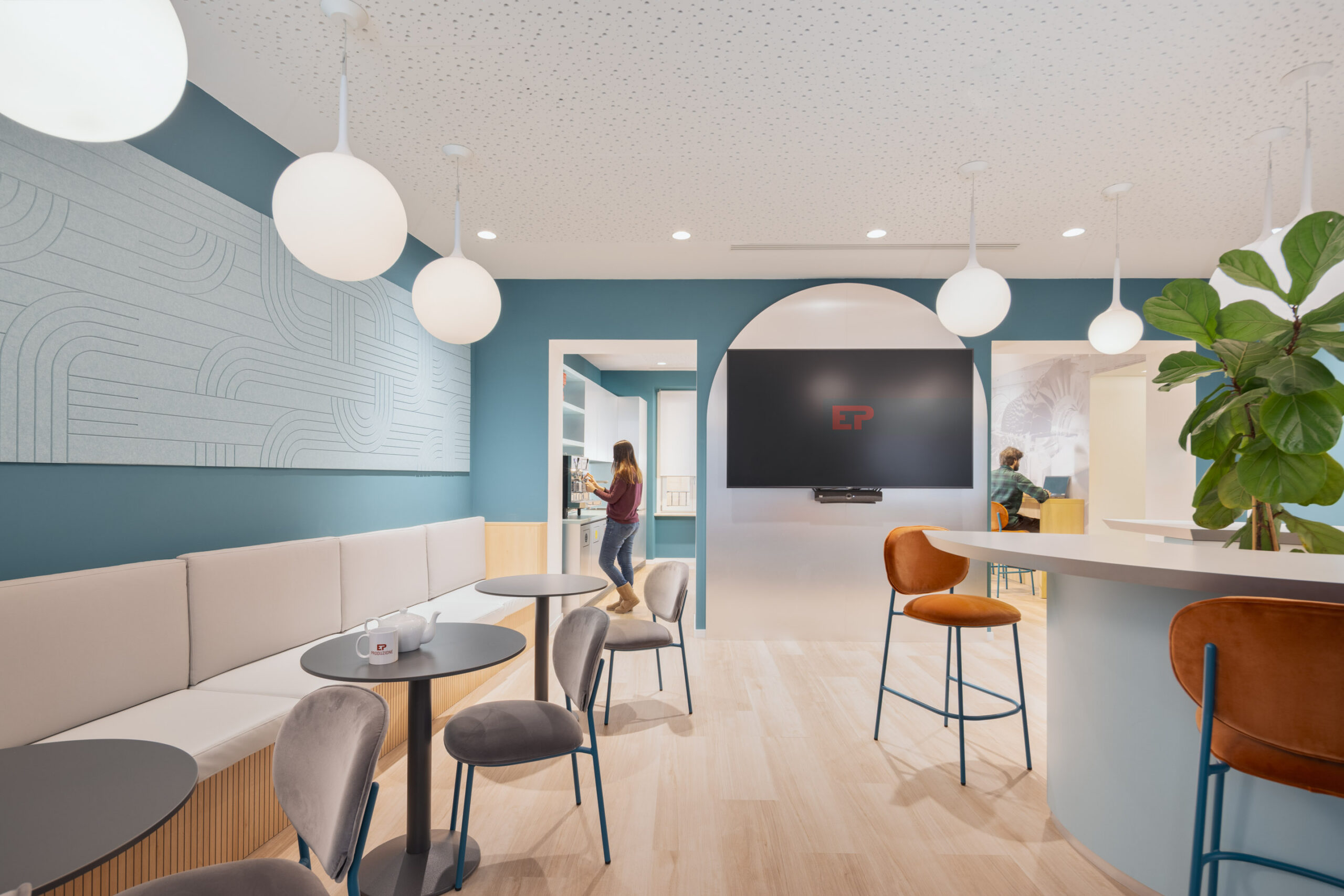 La nuova sede di EP Produzione interpreta il concetto di ufficio collaborativo, dove ogni aspetto è orientato a favorire sia la funzionalità sia il benessere quotidiano delle persone. Tétris ha progettato e realizzato gli spazi, situati al secondo piano di uno storico palazzo del ’400 con vista su piazza Barberini, per rispondere alle esigenze del lavoro contemporaneo grazie a soluzioni avanzate e centrate sul comfort.