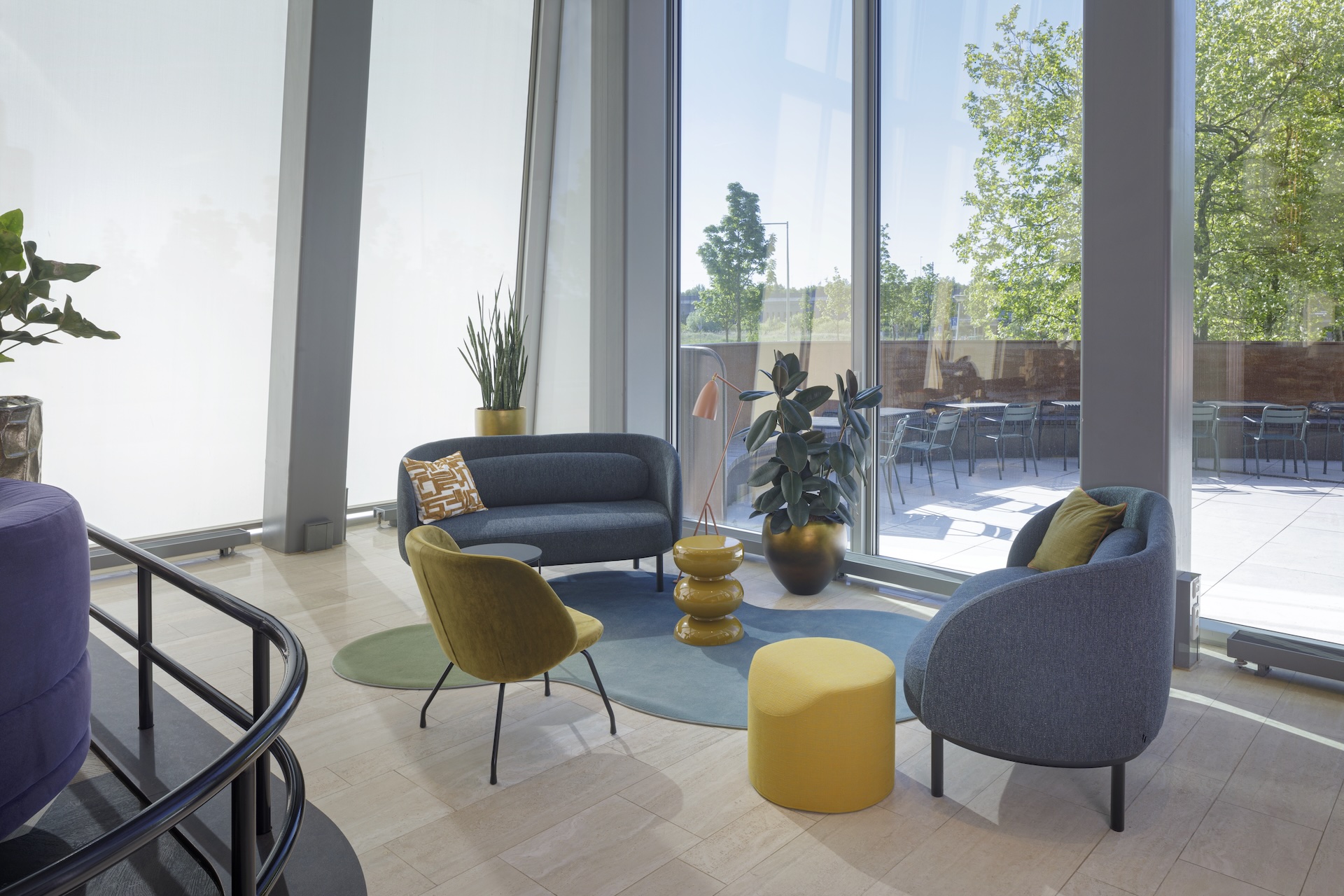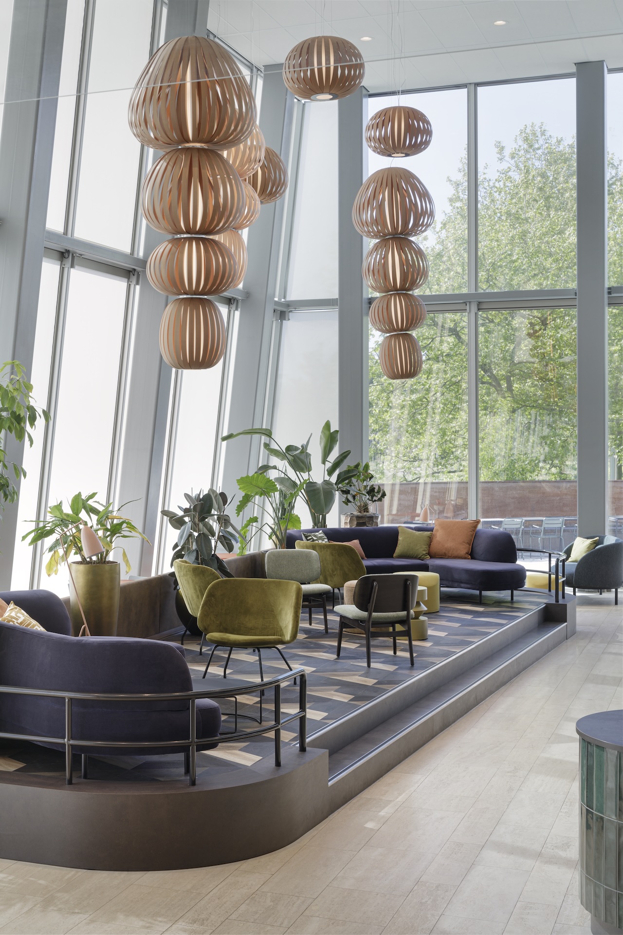 DR1's innovatieve aanpak creëerde onderscheidende trein-stijl zitplekken die eenvoudig aanpassen tijdens de werkdag. Deze doordacht ontworpen ruimtes functioneren als informele vergaderplekken tijdens de ochtenduren, rustige werkplekken voor laptopwerk tijdens drukke momenten, en levendige netwerkplekken tijdens lunch en borrels.